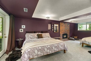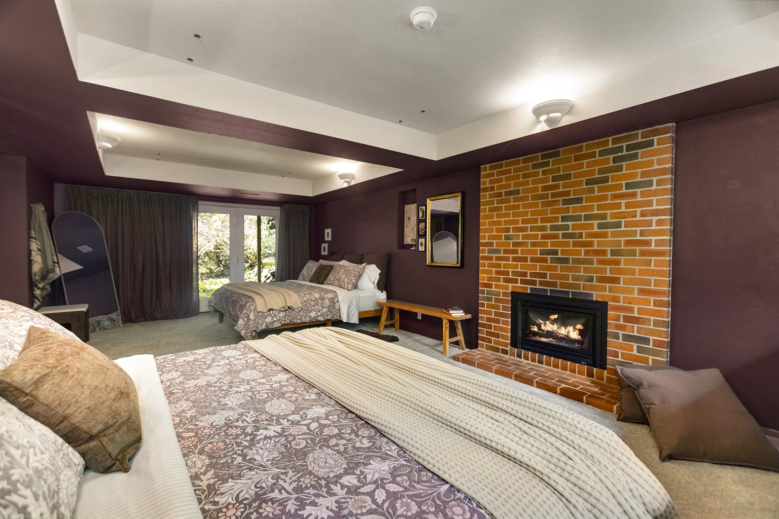 ▪️ LOWER PRIMARY RETREAT — A massive space divided into two sleeping areas with two King beds, a private gas fireplace, and direct garden access.